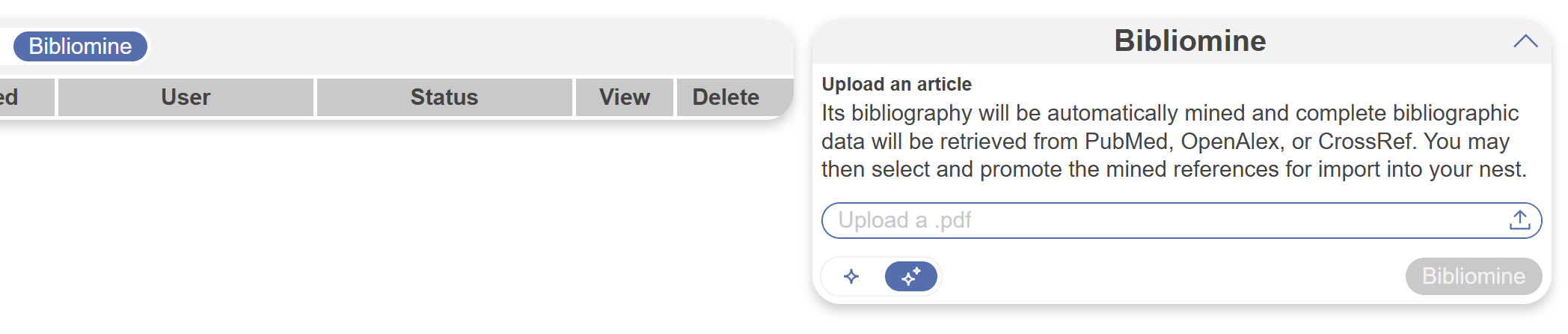 The Nested Knowledge Bibliomine feature auto-extracts citations when you upload a pdf of any previous systematic review or landmark study and imports all cited references as records directly into your nest. This allows for fast updating of existing reviews and turns them into living reviews through quick implementation in the software. Alternatively, citation mining from an existing project pdf builds a solid foundation for a new project in your field of interest.