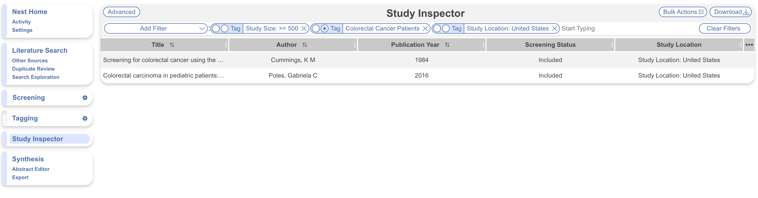 This not only produces a hierarchy for you, but you can then go on to immediately filter to subsets of studies to view and screen using Study Inspector: