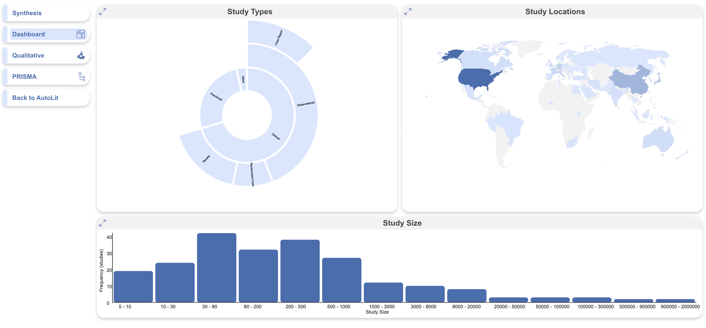 Core Smart Tags also allows you to display additional cards in Dashboard. This includes tags as Sunburst Cards, Study Location as a Map/Choropleth, and Study Types as a Histogram: