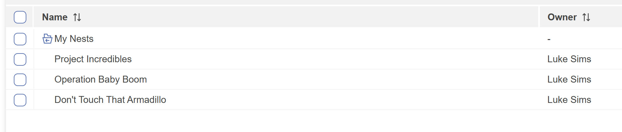 Your nests will be appear inside the folder. You can see the directory under the search bar. You can move nests back to the parent directory by dragging and dropping in a similar fashion.