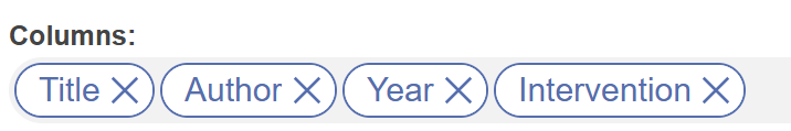 Custom Tables enable you to choose which bibliographic data, tags, and data elements (if applicable) you would like to export in your included studies only. Use this option if: