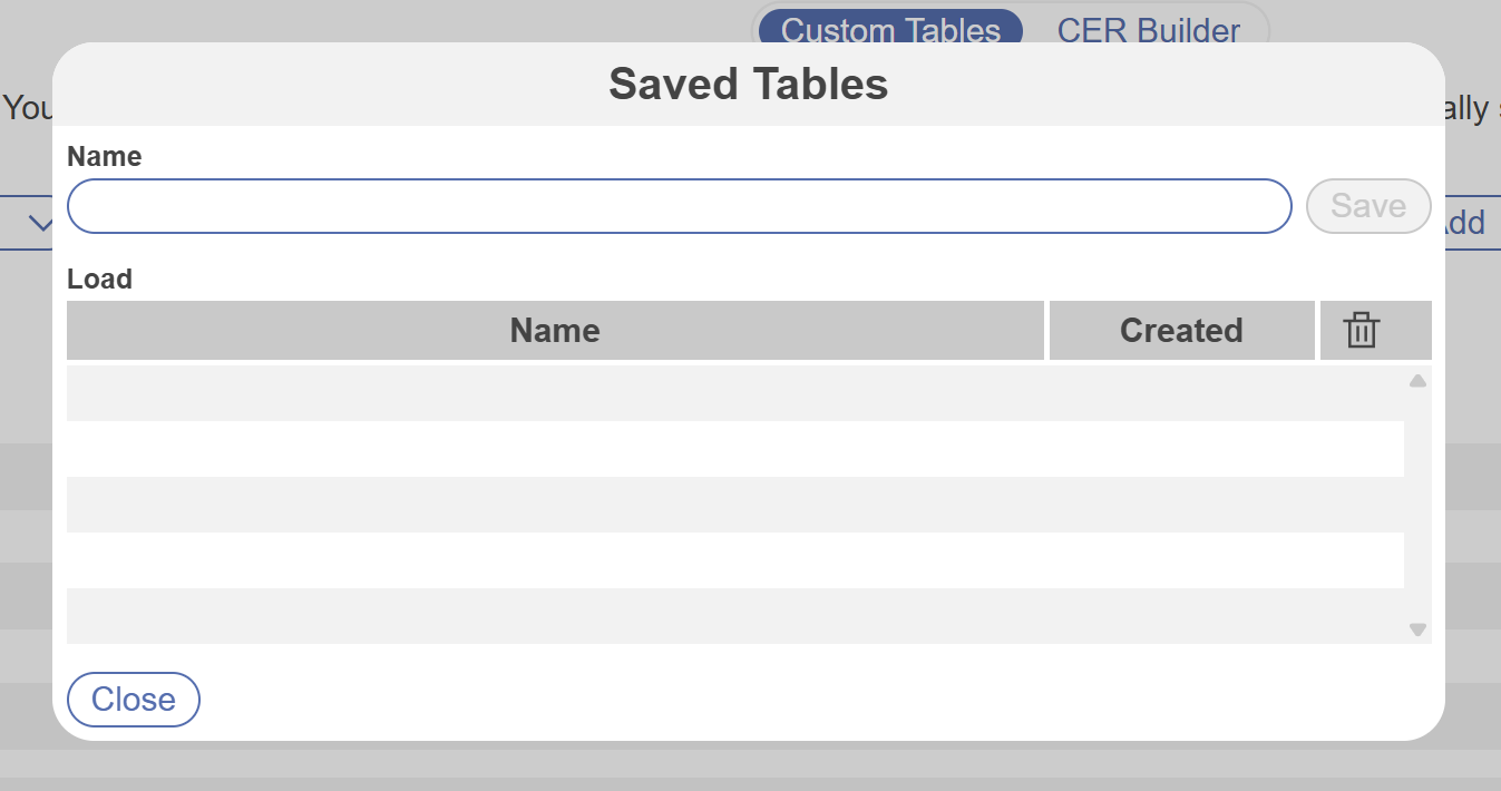 Once you have spent time building out your table, you may wish to save it for access again later as when you refresh the page, the table builder also refreshes.