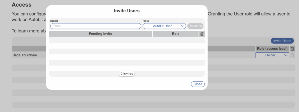 This page describes how to collaborate with other users on AutoLit or Synthesis. In general, we recommend granting Organizational access, as it simplifies access management across large groups of people. Access may be granted to individual users for smaller projects or for one-time access.