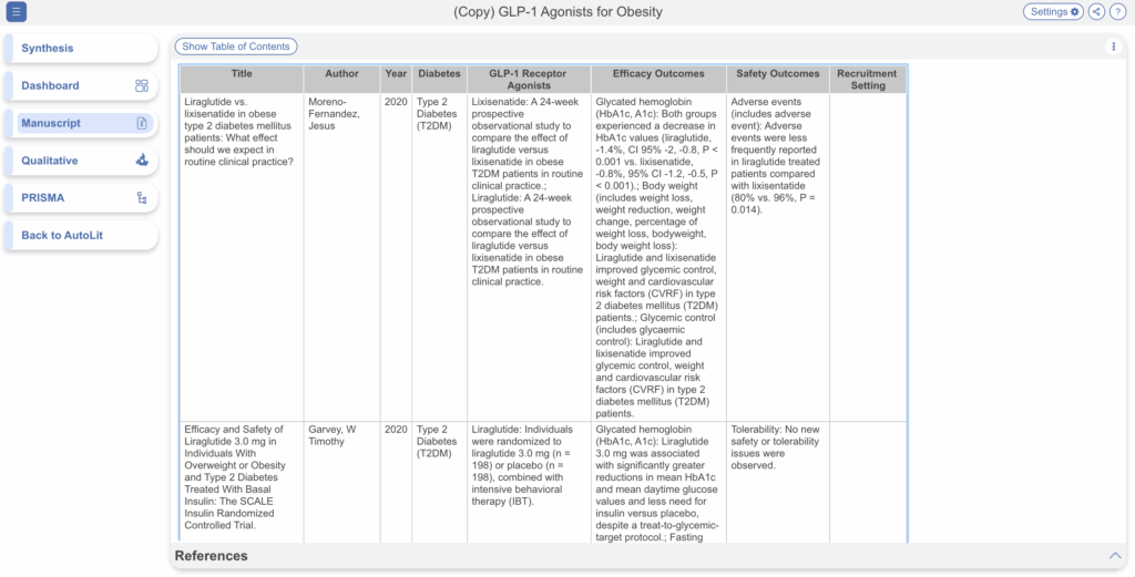 This page describes how to view and interpret the Manuscript output in Synthesis. To learn how to use the Manuscript Editor in AutoLit, click here.